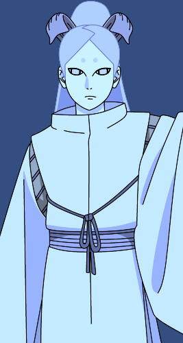 This is the standard appearance of an Otsutsuki alien prior to Earth human DNA absorbtion: Paper white transclucent skin, androgynous build with no secondary sex characteristics, hair devoid of pigment. Skin cannot tolerate sunlight.
